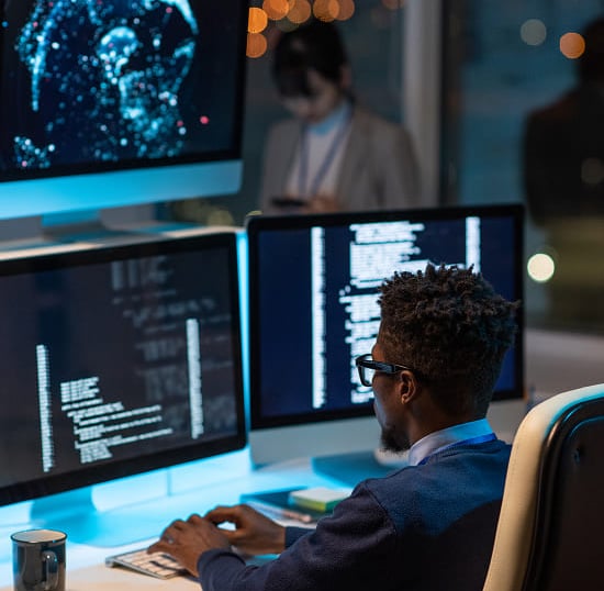 We prioritise human-centric design, embedding ethical, technical and economic considerations at the core of every solution we deliver, while supporting de-risked, future-ready AI adoption and upskilling your workforce to thrive alongside it